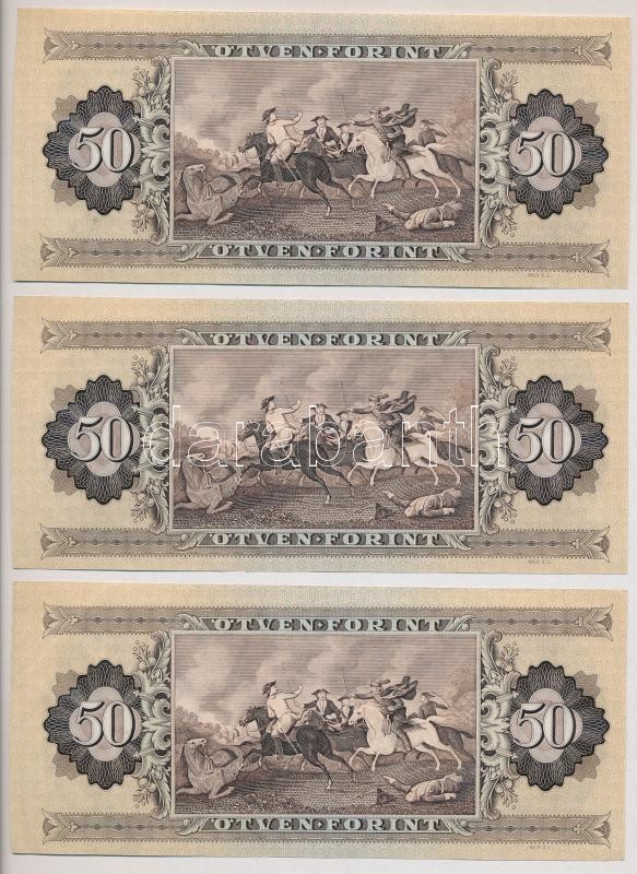 1980. 50Ft (3x) egy ugrással sorszámkövetők T:I https://www.darabanth.com/hu/287-Gyorsarveres/287.0/Numizmatika/Magyar-bankjegyek~500002/1980-50Ft-3x-egy-ugrassal-sorszamkovetok-TI~II1502217