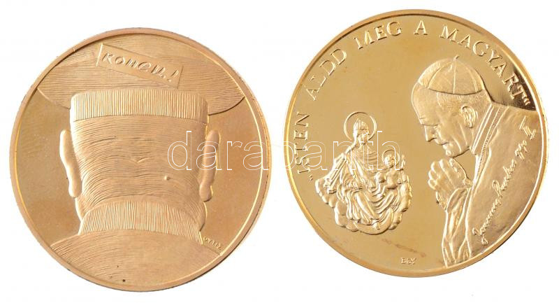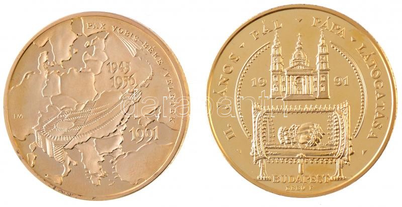 Fritz Mihály (1947-) 1991. "Pax Vobis - Béke veletek 1945-1956." aranyozott emlékérem tokban (42,5mm) + Bognár György (1944-) / Lebó Ferenc (1960-) 1991. "II.János Pál pápa látogatása - Budapest" aranyozott emlékérem tokban (42,5mm) T:1(PP) ujjlenyomat
