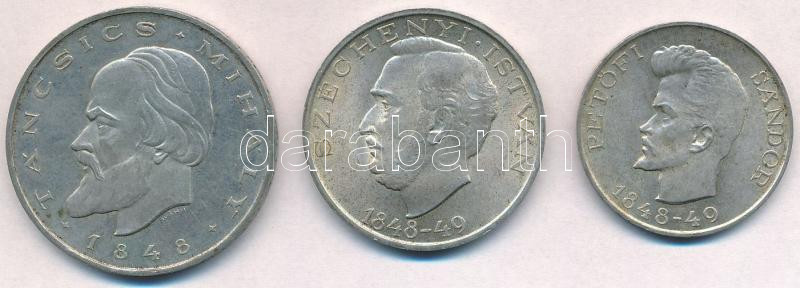 Leírás: 1948. 5Ft Ag "Petőfi" + 10Ft Ag "Széchenyi" + 20Ft Ag "Táncsics" - "Szabadságharc sor" T:2 kis ph.