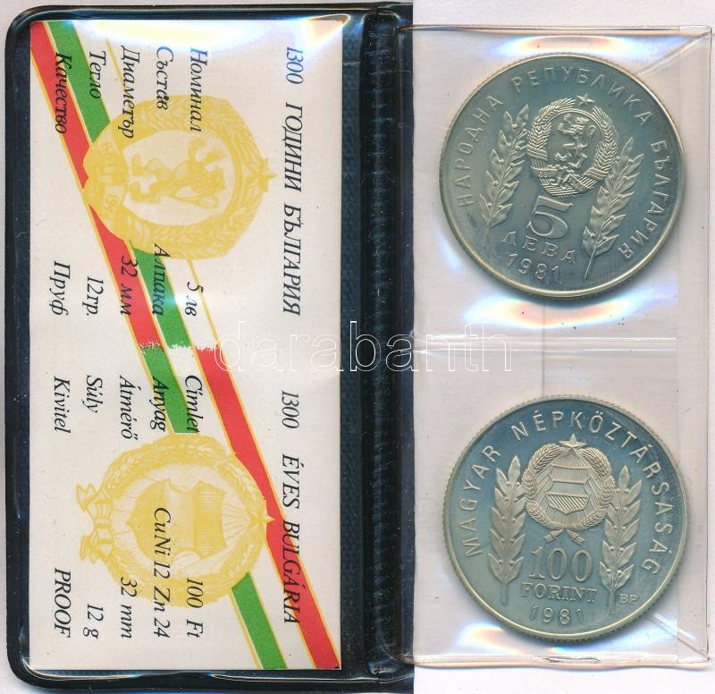 Leírás: 1981. 100Ft Cu-Ni + 5L Cu-Ni "Bulgária 1300 éves" magyar-bolgár közös kiadás, eredeti tokban, tanúsítvánnyal T:1 (PP)