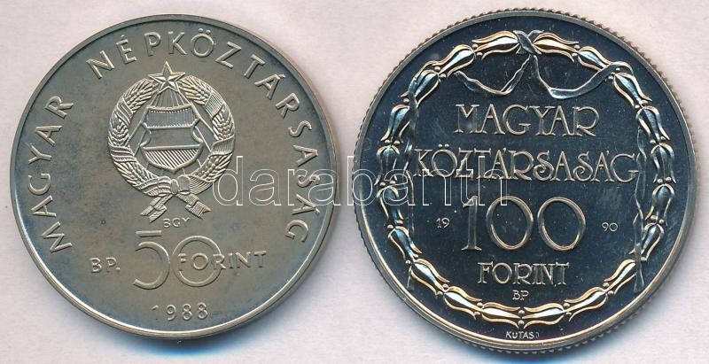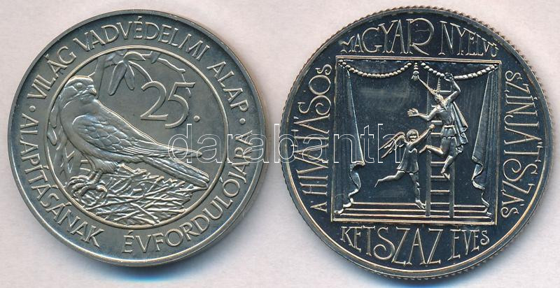 Leírás: 1988. 50Ft "Világ Vadvédelmi Alap II." + 1990. 100Ft Cu-Ni "200 éves a hivatásos magyar nyelvű színjátszás" T:BU