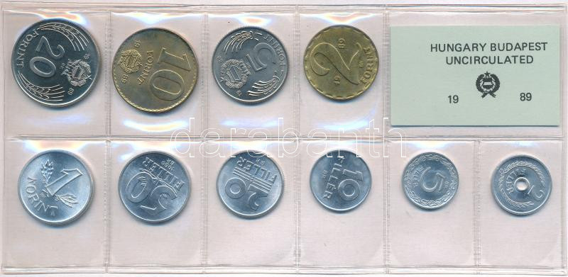 Leírás: 1989. 2f-20Ft 10db klf, érmés forgalmi sor fóliatokban T:1