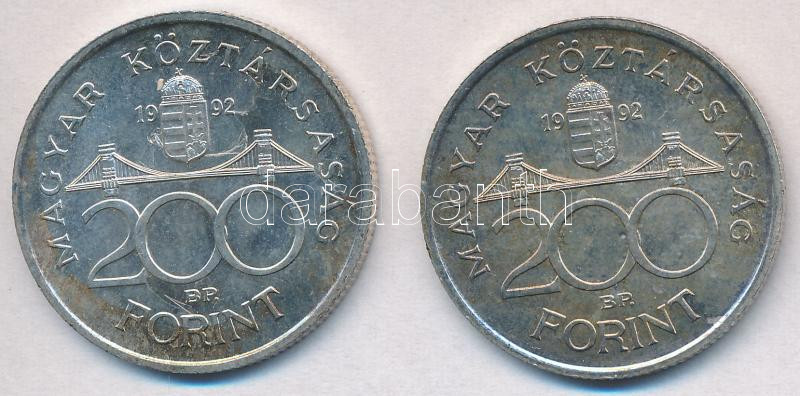 Leírás: 1992. 200Ft Ag "MNB" (2x) T:2 patina