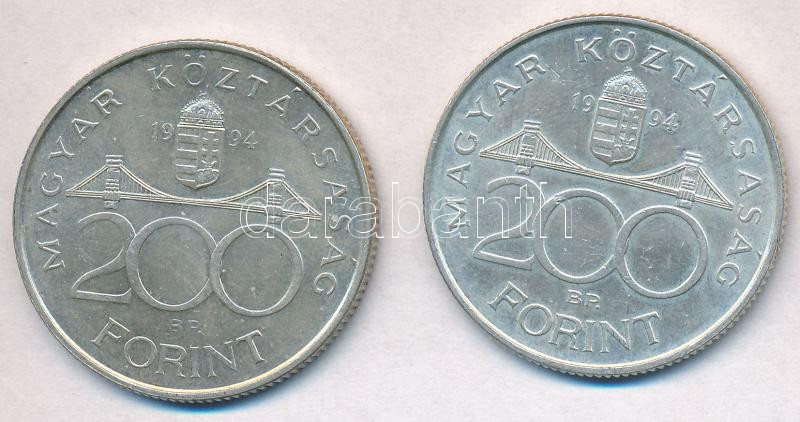 Leírás: 1994. 200Ft Ag "Deák" (2x) T:2