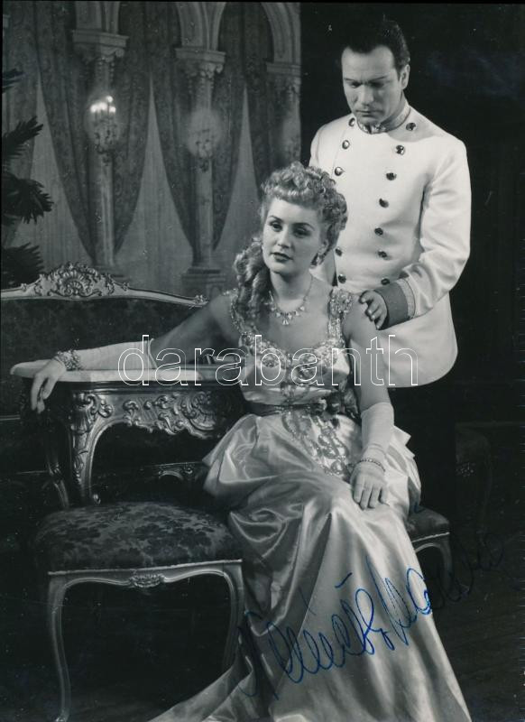 Leírás: Németh Marika (1925-1996) színésznő aláírása az őt ábrázoló fotón