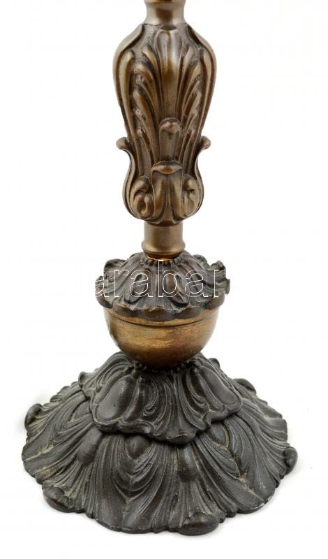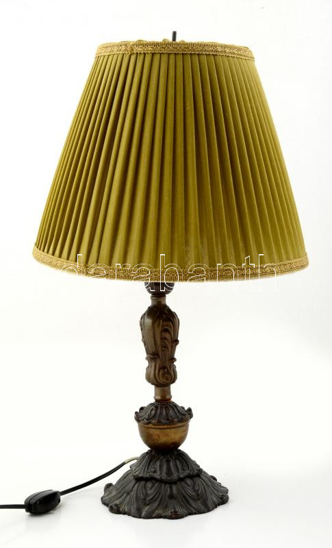 Leírás: Asztali lámpa, festett fém, vászon burával, piszkos, m:51 cm