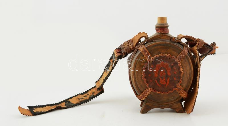 Fából készült kulacs bőr díszítéssel 19 cm https://www.darabanth.com/hu/288-Gyorsarveres/288.0/Festmeny-mutargy-papirregiseg-egyeb/Bolhapiac~11/Fabol-keszult-kulacs-bor-diszitessel-19-cm~II1465453
