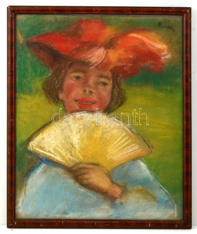 Leírás: Rónai jelzéssel: Kalapos hölgy. Pasztell, papír, üvegezett keretben, 50×40 cm