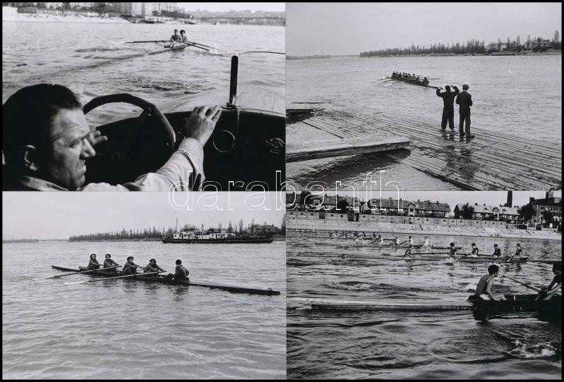 1954 Budapest, evezős sportolók a Dunán, 35 db vintage negatív (24x36 mm) és az erről készült mai nagyítások (10x15 cm) Kotnyek Antal (1921-1990) fotóriporter hagyatékából