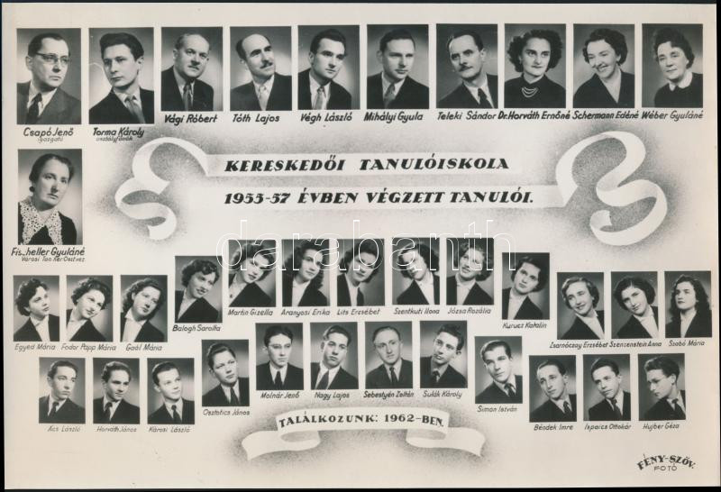 1957 Székesfehérvár, Kereskedői Tanulóiskola tanári kara és végzett nö... https://www.darabanth.com/hu/288-Gyorsarveres/288.0/Festmeny-mutargy-papirregiseg-egyeb/Foto~19/1957-Szekesfehervar-Kereskedoi-Tanuloiskola-tanari-kara-es-vegzett-novendekei-kistablo-~II1510559