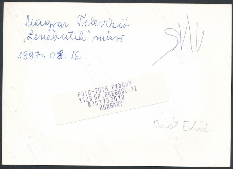 Leírás: 1997 Magyar Televízió Zenebutik műsora, Foto Tóth György, hátoldalán feliratozva, 12,5x18 cm