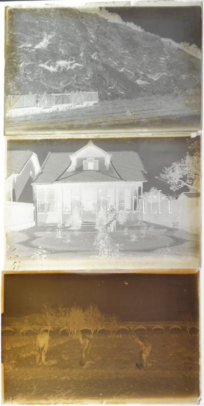 Leírás: cca 1920 Rappensberger Andor m. kir. főerdőtanácsos hagyatákából 13 db vintage üveglemez negatív, különféle témákról, 10x15 cm