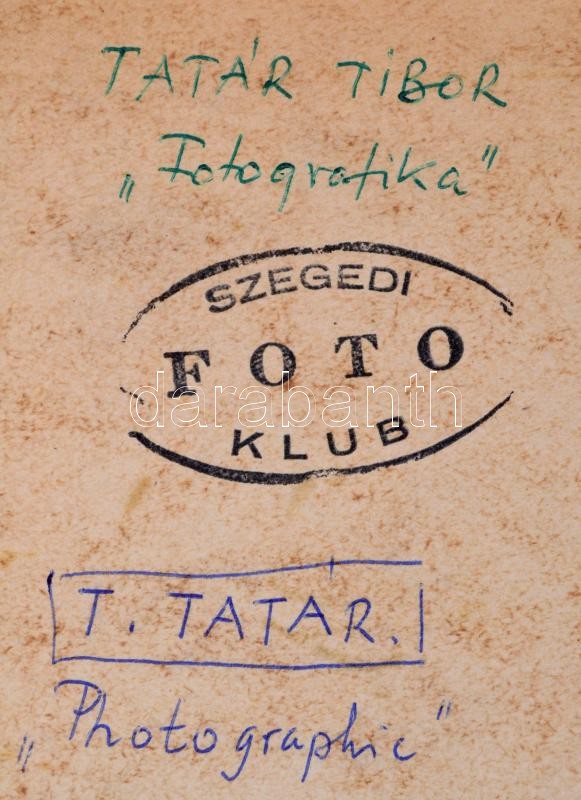 cca 1973 Tatár Tibor: Fotografika, feliratozott vintage fotóművészeti ... https://www.darabanth.com/hu/288-Gyorsarveres/288.0/Festmeny-mutargy-papirregiseg-egyeb/Foto~19/cca-1973-Tatar-Tibor-Fotografika-feliratozott-vintage-fotomuveszeti-alkotas-kasirozva-39x2~II1511450