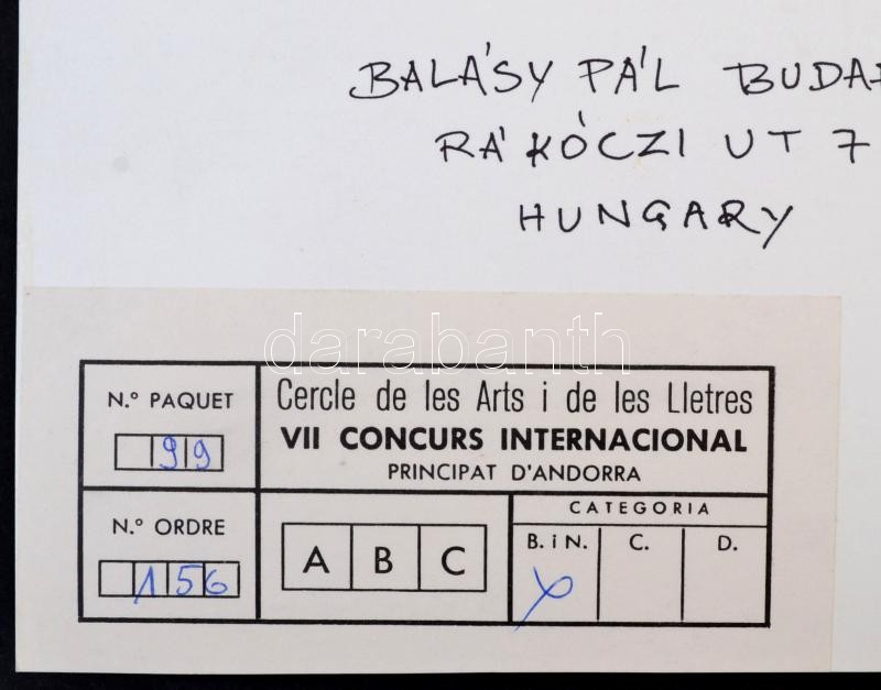 cca 1974 Balásy Pál 3 db feliratozott, vintage fotóművészeti alkotása,... https://www.darabanth.com/hu/288-Gyorsarveres/288.0/Festmeny-mutargy-papirregiseg-egyeb/Foto~19/cca-1974-Balasy-Pal-3-db-feliratozott-vintage-fotomuveszeti-alkotasa-40x30-cm-es-40x21-cm-k~II1511853