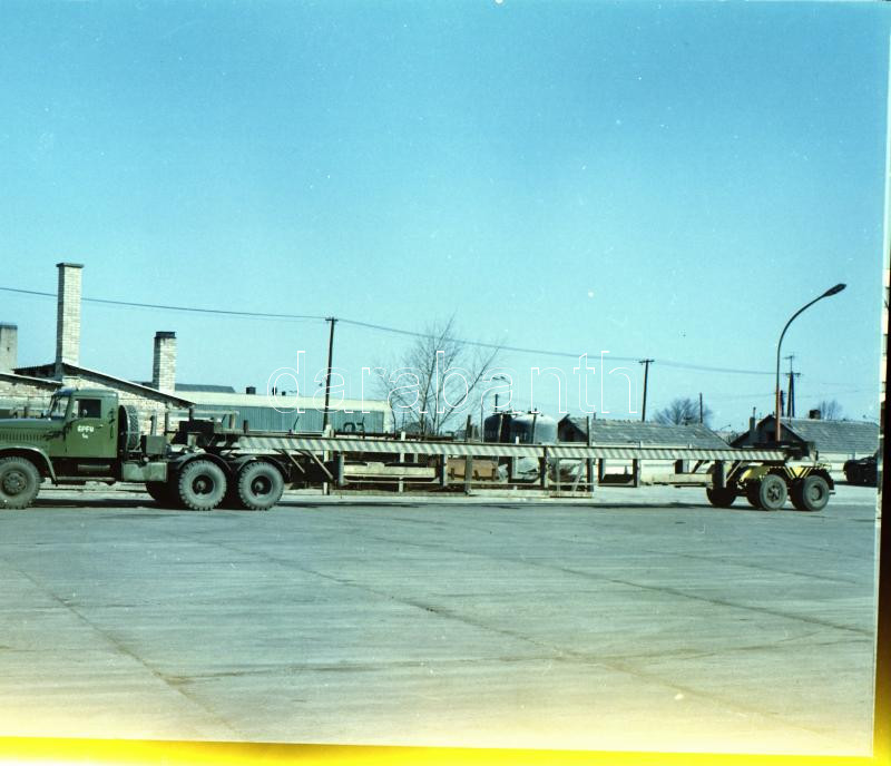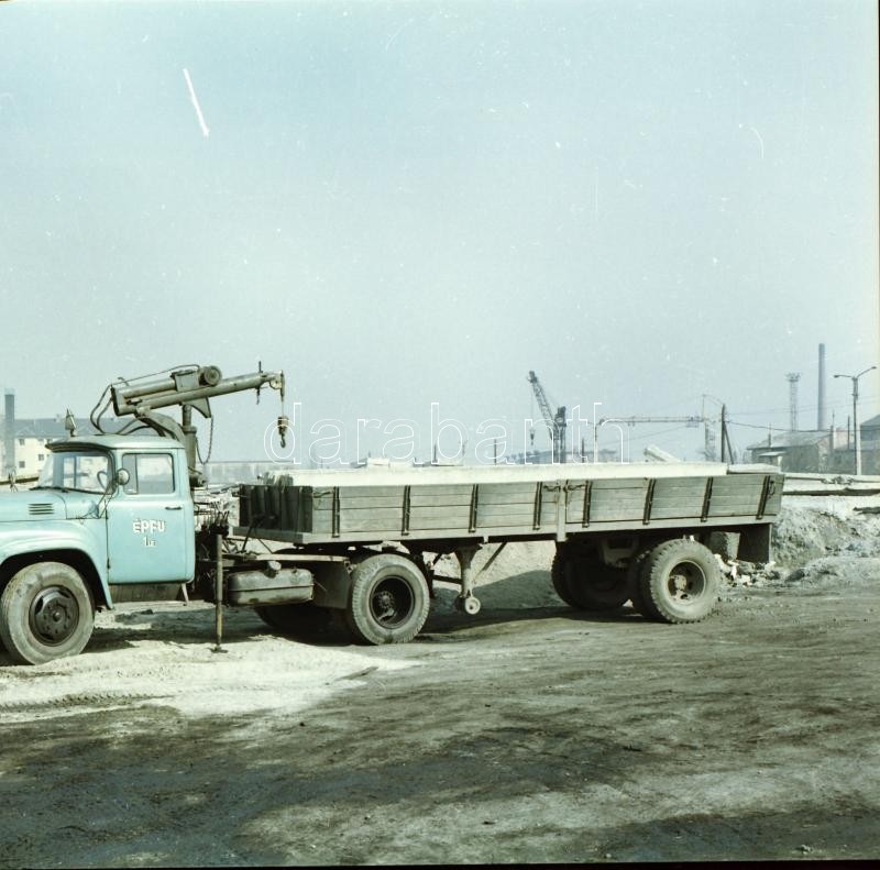 cca 1975 Tehergépjárművek, erőgépek az ÉPFU (Építőipari Fuvarozó Vállalat) archívumából, 9 db szabadon felhasználható vintage negatív, 6x6 cm és 6x7 cm