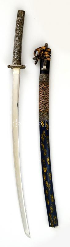Modern nagyméretű dísz szamurájkard, hüvely hiányos, h:95 cm https://www.darabanth.com/hu/288-Gyorsarveres/288.0/Festmeny-mutargy-papirregiseg-egyeb/Militaria~25/Modern-nagymeretu-disz-szamurajkard-huvely-hianyos-h95-cm~II1517586