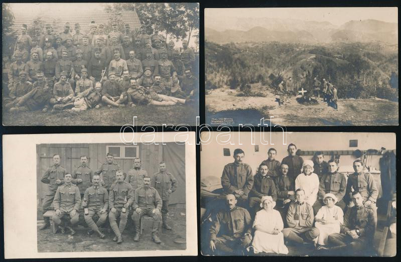 Leírás: cca 1916 Katonai fényképek tétele, 13 db privát fotólap, hat feliratozva, 9x14 cm
