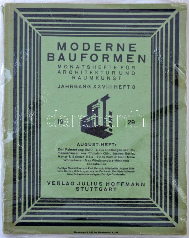 1929 Német építészeti és lakberendezési folyóirat sok képpel / Moderne... https://www.darabanth.com/hu/288-Gyorsarveres/288.0/Festmeny-mutargy-papirregiseg-egyeb/Nyomtatvanyok~27/1929-Nemet-epiteszeti-es-lakberendezesi-folyoirat-sok-keppel-Moderne-Bauformen-Monatsheft~II1477300