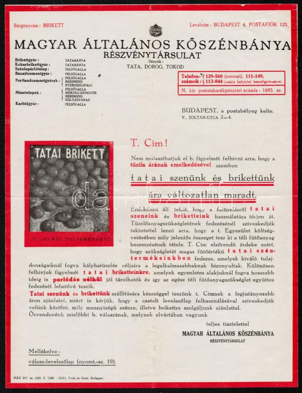 1937 Magyar Általános Kőszénbánya Rt. reklámhirdetése https://www.darabanth.com/hu/288-Gyorsarveres/288.0/Festmeny-mutargy-papirregiseg-egyeb/Nyomtatvanyok~27/1937-Magyar-Altalanos-Koszenbanya-Rt-reklamhirdetese~II1519009
