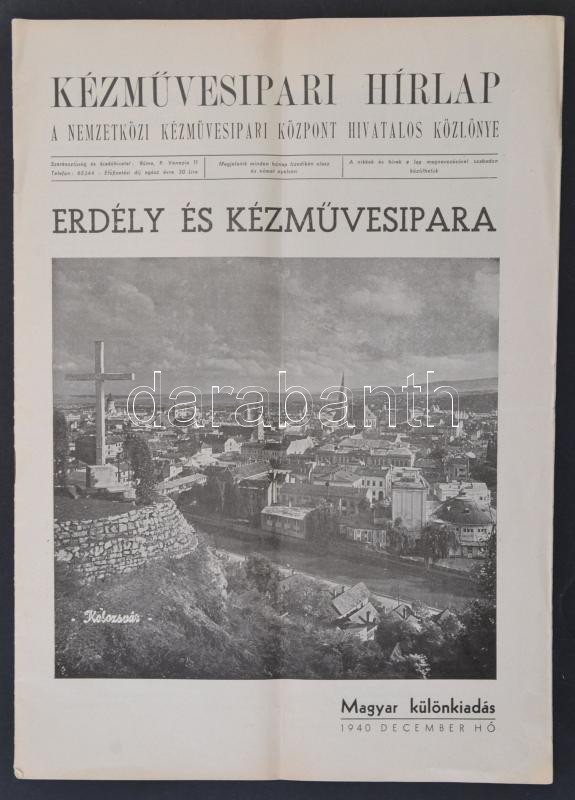 Leírás: 1940 A Kézművesipari Hírlap, a Nemzetközi Kézművesipari Központ Hivatalos Közlönye decemberi szám, benne Erdély és kézművesipara
