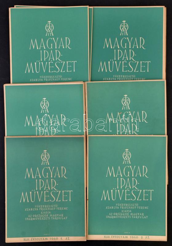 1940 Magyar Iparművészet, Országos Magyar Iparművészeti Társulat. XLIII. teljes évfolyama, 12 száma, kiadói tűzött papírkötésben, nagyrészt jó állapotban.