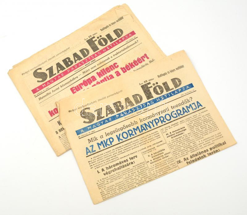 1947 Szabad Föld, 1947. szeptember 14., október 14., III. évfolyam 37.... https://www.darabanth.com/hu/288-Gyorsarveres/288.0/Festmeny-mutargy-papirregiseg-egyeb/Nyomtatvanyok~27/1947-Szabad-Fold-1947-szeptember-14-oktober-14-III-evfolyam-37-41-szamok~II1512566