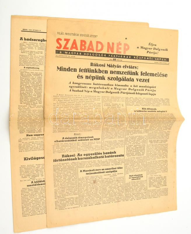 1948 Szabad Nép VI. évfolyam 135. szám, 1948. június 15., benne a két ... https://www.darabanth.com/hu/288-Gyorsarveres/288.0/Festmeny-mutargy-papirregiseg-egyeb/Nyomtatvanyok~27/1948-Szabad-Nep-VI-evfolyam-135-szam-1948-junius-15-benne-a-ket-munkaspart-egyesulesC3~II1512592