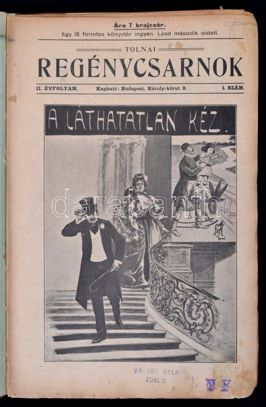 Tolnai Regénycsarnok, II. évfolyam 1-27 számok. Átköttöt félvászon köt... https://www.darabanth.com/hu/288-Gyorsarveres/288.0/Festmeny-mutargy-papirregiseg-egyeb/Nyomtatvanyok~27/Tolnai-Regenycsarnok-II-evfolyam-1-27-szamok-Atkottot-felvaszon-kotesben-javitott-ger~II1512334