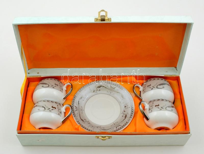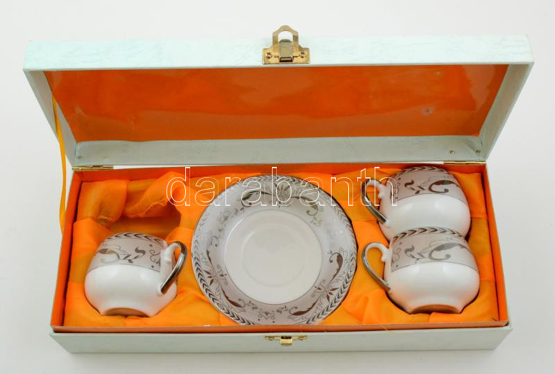 2 db Terebess porcelán teás készlet, az egyik hiányos: 4+3 db csésze+alj, matricás, jelzettek, saját dobozukban, az egyik csésze füle letört, d: 5 ill. 11 cm