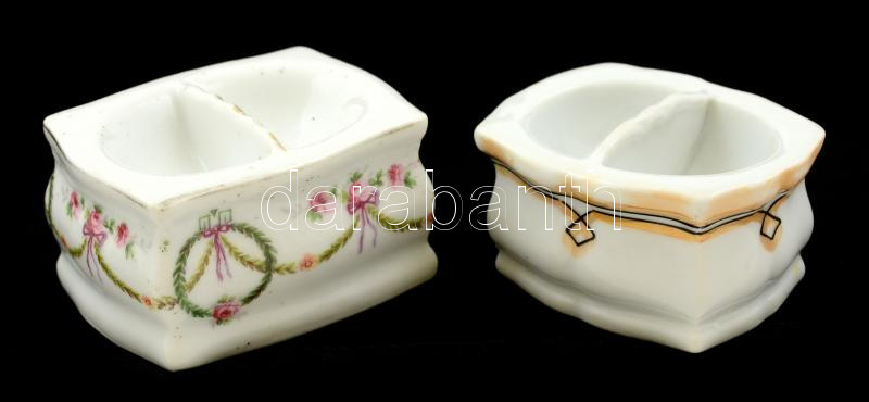 2 db só-bors tartó, matricás, jelzés nélkül, kopott,7×4 és 8×5 cm https://www.darabanth.com/hu/288-Gyorsarveres/288.0/Festmeny-mutargy-papirregiseg-egyeb/Porcelan~7/2-db-so-bors-tarto-matricas-jelzes-nelkul-kopott-7C3974-es-8C3975-cm~II1516366