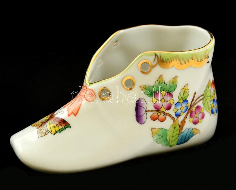 Herendi Viktória mintás cipő, kézzel festett, jelzett, hibátlan, h:10 ... https://www.darabanth.com/hu/288-Gyorsarveres/288.0/Festmeny-mutargy-papirregiseg-egyeb/Porcelan~7/Herendi-Viktoria-mintas-cipo-kezzel-festett-jelzett-hibatlan-h10-cm-m5-cm~II1518861