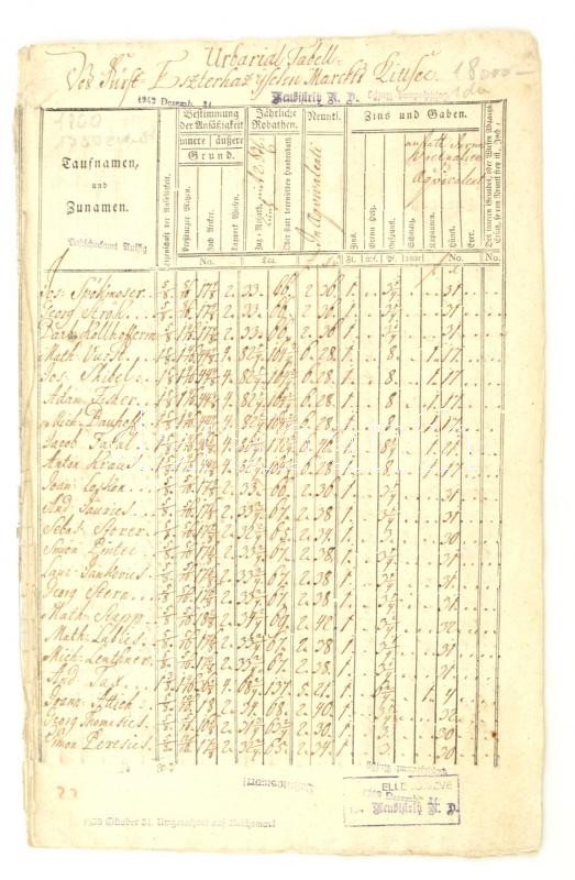 1773 Úrbéri összeírás az Eszterházy család Köpcsényi birtokáról, viaszpecséttel, 34x22 cm / Urbarial Tabell from Kitsee (Kopcany) property of the Esterházy family, with vax seals on it, 34x22 cm