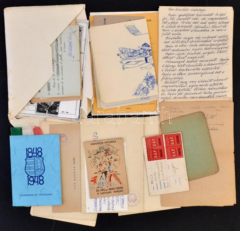 Leírás: cca 1945-1948 Weisz Zoltán festőművész iratanyaga(meghívók, igazolványok, kézirat, stb.)