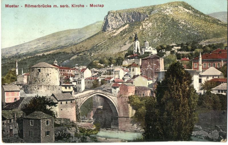 Mostar, Römerbrücke m. serb. Kirche / bridge and Serbian church https://www.darabanth.com/hu/288-Gyorsarveres/288.0/Kepeslapok/Bosznia-Hercegovina~200018/Mostar-Romerbrucke-m-serb-Kirche-bridge-and-Serbian-church~II1510535