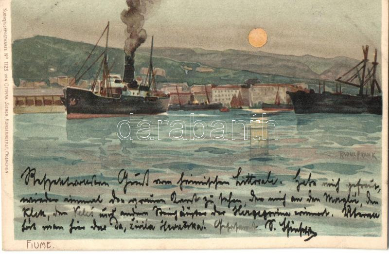Leírás: Fiume, Künstlerpostkarte von Ottmar Zieher, litho s: Raoul Frank