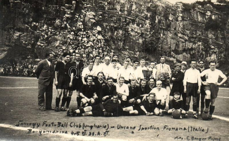 Leírás: Fiume, Stadion Borgomarina (Stadion Kantrida), Somogy FC - U.S. Fiumana futball mérkőzés, csoportkép, G. Berger Foto / football match, group photo