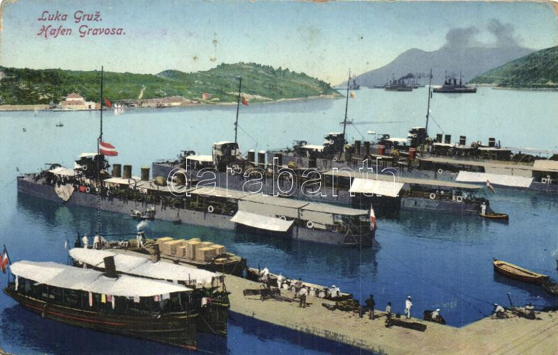 Gruz, Gravosa; Luka / Hafen / kikötő, a K.u.K. haditengerészet Huszár-... https://www.darabanth.com/hu/288-Gyorsarveres/288.0/Kepeslapok/Horvatorszag~200009/Gruz-Gravosa-Luka-Hafen-kikoto-a-KuK-haditengereszet-Huszar-osztalyu-romboloi-har~II1512468