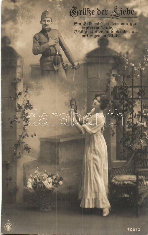 Leírás: 'Grüße der Liebe' / WWI military couple, farewell, 'K.u.K. Garnisonsspital Nr. 10' (EB)