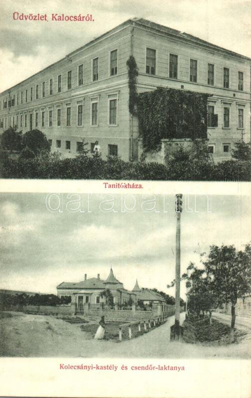 Leírás: Kalocsa, Tanítók háza, Kolecsányi kastély, Csendőr laktanya, kiadja Csicsáky János