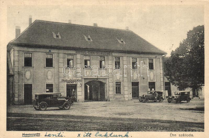 Kapuvár, Éhn szálloda, Órendy L. órás és ékszerész, automobilok https://www.darabanth.com/hu/288-Gyorsarveres/288.0/Kepeslapok/Magyarorszag~200005/Kapuvar-Ehn-szalloda-Orendy-L-oras-es-ekszeresz-automobilok~II1517644
