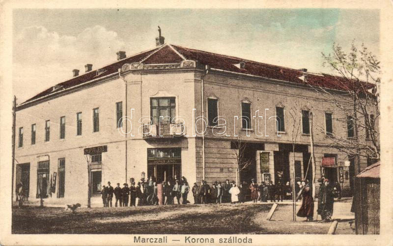 Marcali, Korona szálloda, Kopári Jenő üzlete (EK) https://www.darabanth.com/hu/288-Gyorsarveres/288.0/Kepeslapok/Magyarorszag~200005/Marcali-Korona-szalloda-Kopari-Jeno-uzlete-EK~II1517660