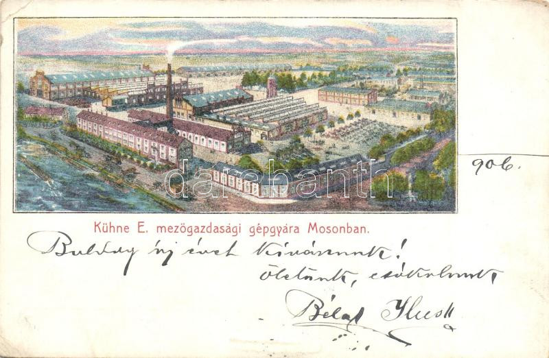 Moson, Kühne E. mezőgazdasági gépgyára (EK) https://www.darabanth.com/hu/288-Gyorsarveres/288.0/Kepeslapok/Magyarorszag~200005/Moson-Kuhne-E-mezogazdasagi-gepgyara-EK~II1517687