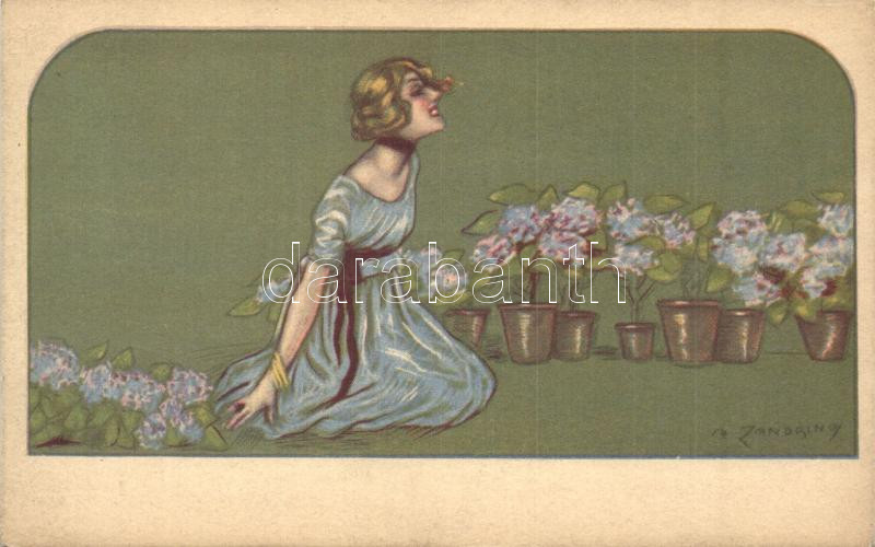 Leírás: Italian art postcard, Lady with flowers, Ufficio Revisione Stampa di Milano N. 3579. 95-2 s: Adelina Zandrino (EK)