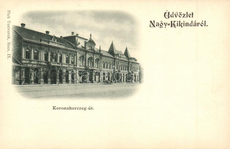 Leírás: Nagykikinda, Kikinda; Koronaherceg út, Johannn Radak, Stefan Joannovits üzletei, Pick Testvérek kiadása / street, shops (EK)