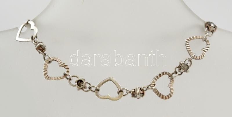 Leírás: Ezüst(Ag) apró szíves-köves karkötő, jelzett, állítható hosszúságú, max. 19 cm, bruttó: 5,5 g