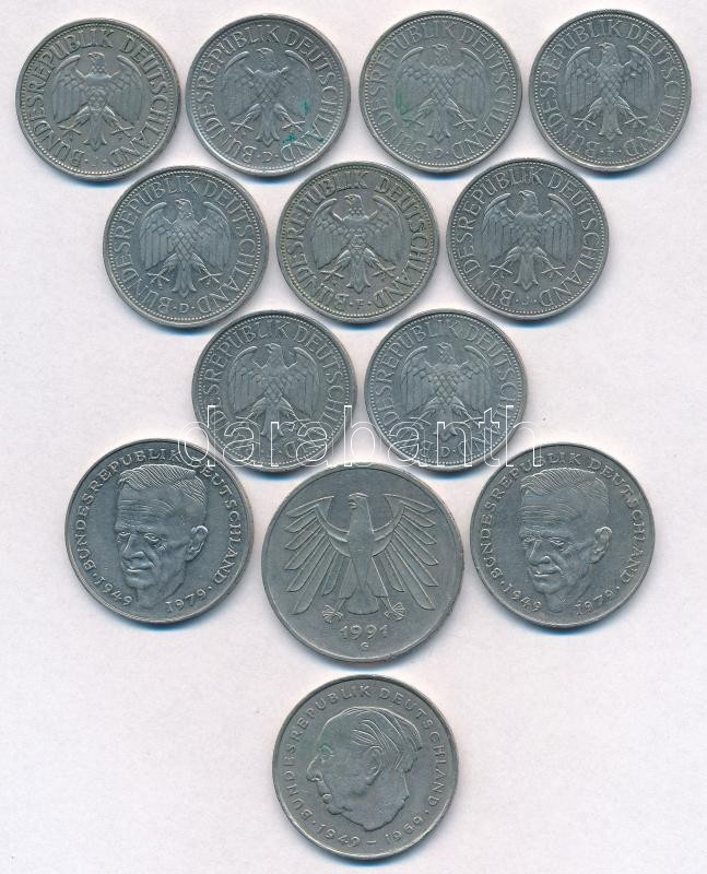 Leírás: NSZK 1950-1994. 1M Cu-Ni (9x) + 1971J 2M Cu-Ni "Theodor Heuss" + 1985-1990. 2M Cu-Ni "Dr. Kurt Schumacher" + 1991G 5M Cu-Ni T:2