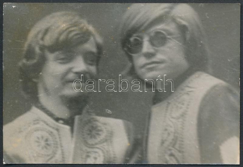 Leírás: cca 1960 Szörényi Levente és Szörényi Szabolcs zenészek fotója, 6,5x9,5 cm