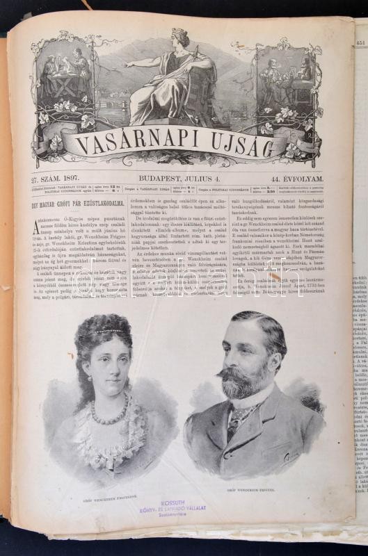 1897 Vasárnapi Ujság, 44. fél évfolyam, 27-52. számok + A Vasárnapi Uj... https://www.darabanth.com/hu/289-Gyorsarveres/289.0/Festmeny-mutargy-papirregiseg-egyeb/Nyomtatvanyok~28/1897-Vasarnapi-Ujsag-44-fel-evfolyam-27-52-szamok-plus-A-Vasarnapi-Ujsag-Regenytara-433-8~II1525325