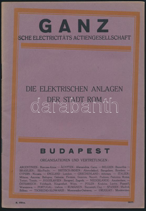 1927 Die elektrischen Anlagen der Stadt Rom, Ganz-sche Electricitäts A... https://www.darabanth.com/hu/289-Gyorsarveres/289.0/Festmeny-mutargy-papirregiseg-egyeb/Nyomtatvanyok~28/1927-Die-elektrischen-Anlagen-der-Stadt-Rom-Ganz-sche-Electricitats-Actiengesellschaft-39p~II1521205