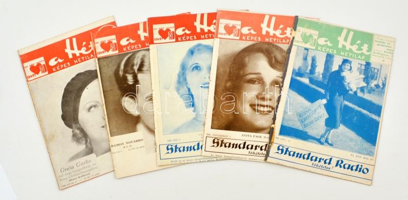 Leírás: 1930 A Hét című képes hetilap Vi. évfolyamának 13, 30, 44, 48, 50. száma, 5 db